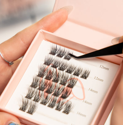 The pre-applied glue will adhere to your lashes as soon as contact is made. To make it easier press upwards using your finger and finalize pressing with your tweezers